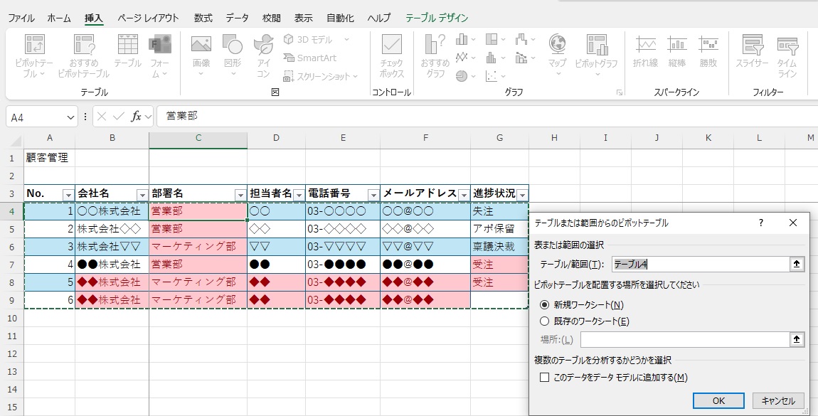 Excelの顧客リストを使ってグラフ化したり、表にしたりしてデータ分析が可能です。