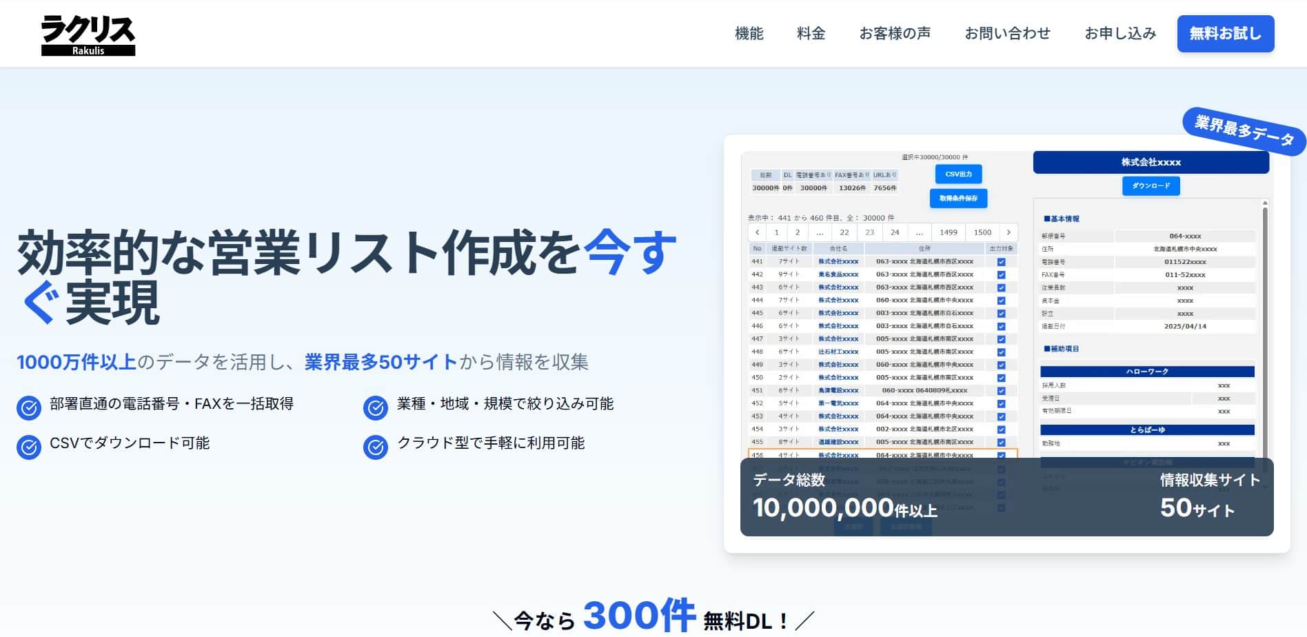 一方で、営業リストをゼロから作成するには時間と手間がかかるため、無料で使える営業リスト作成ツールを活用する企業も増えています。