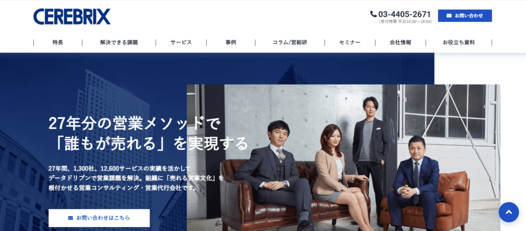 株式会社セレブリックスは、1,300社・12,600サービス※の実績をもとに営業課題を解決に導き、売れる営業文化の定着を目指す営業代行会社です。