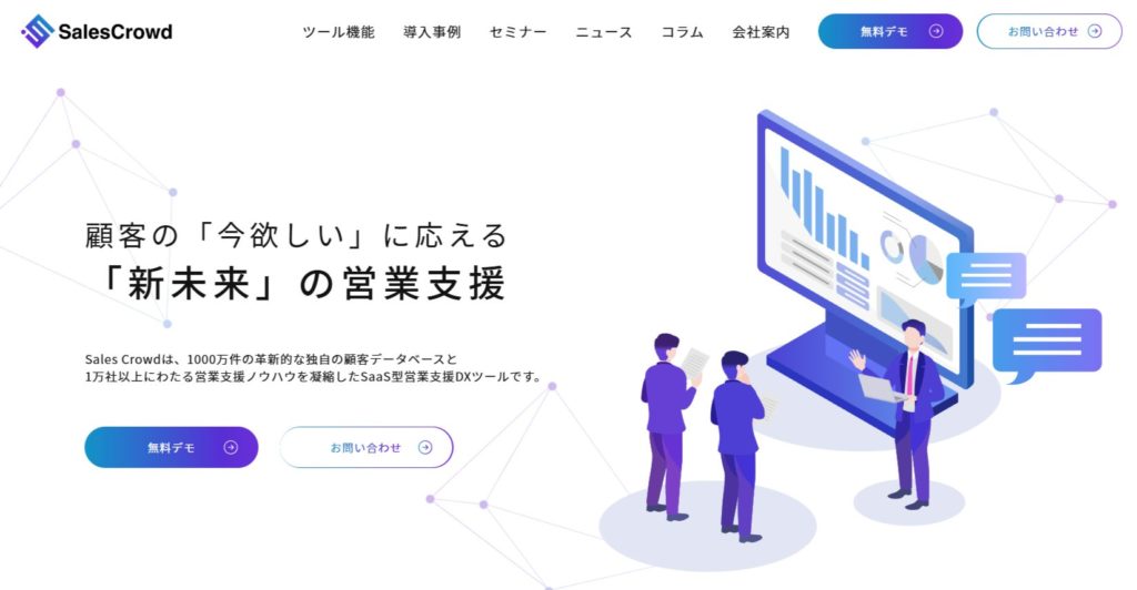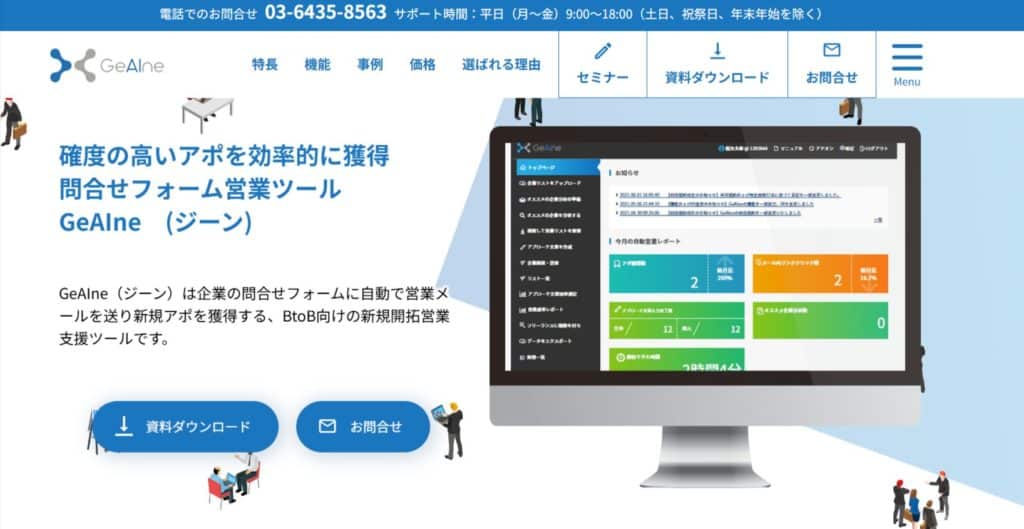 高度なSFA機能も備えており、インサイドセールスやインバウンド営業との相性が高いのが特徴です。