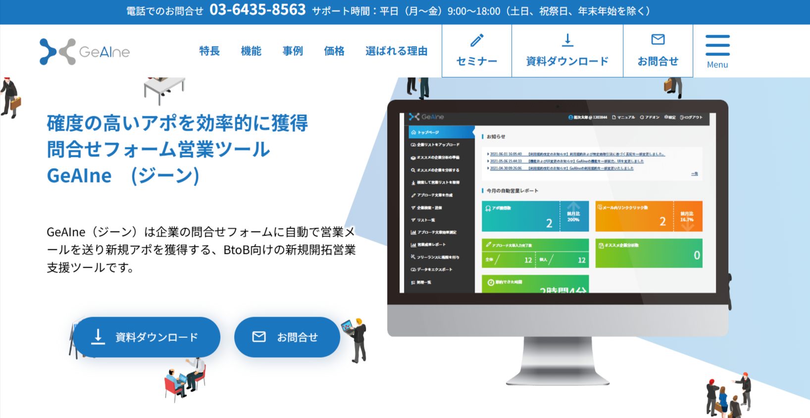 高度なSFA機能も備えており、インサイドセールスやインバウンド営業との相性が高いのが特徴です。